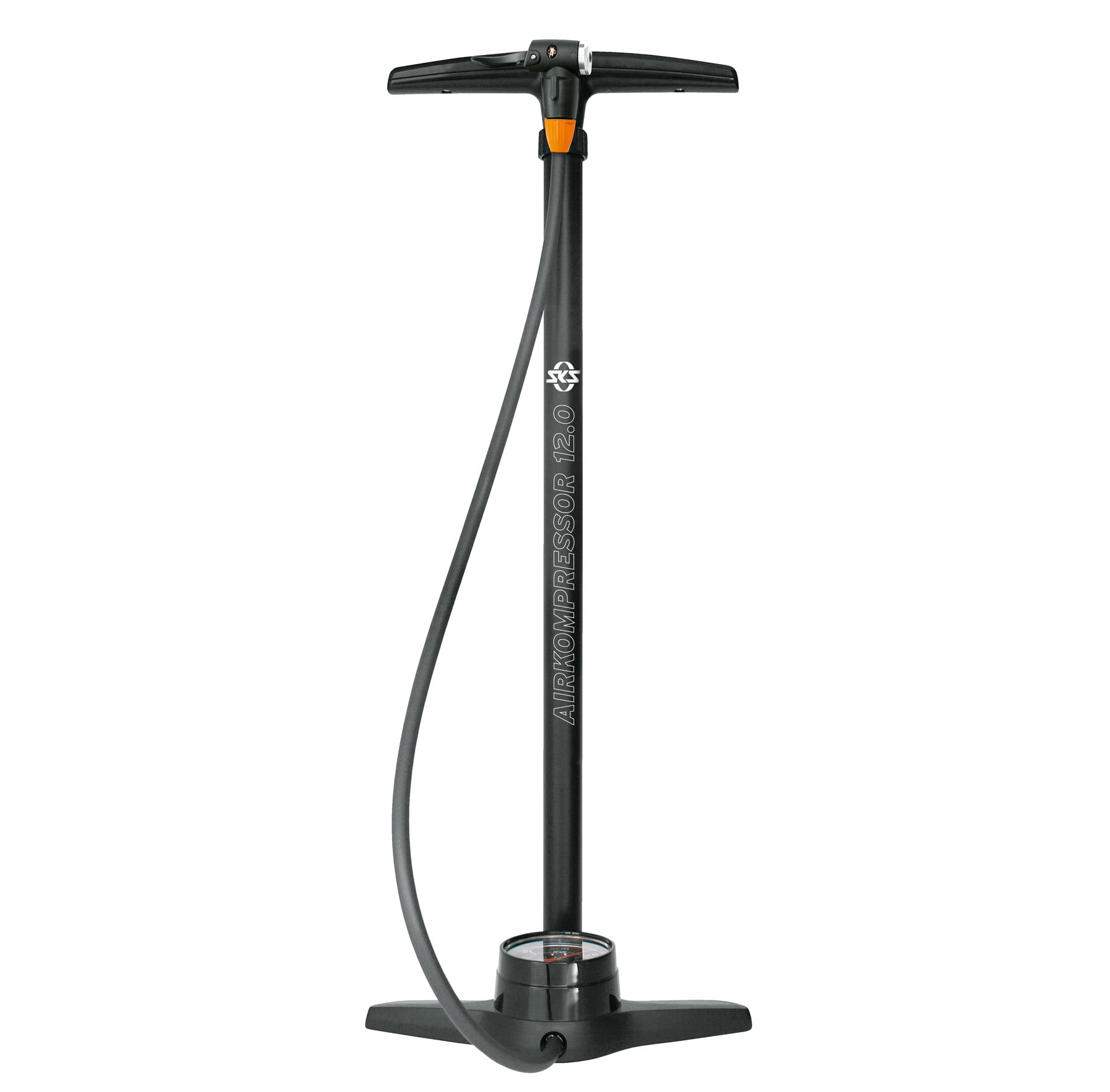 The new high-performance pump for every occasion. Alongside its outstanding value for money, the AIRKOMPRESSOR captivates by its extra-long steel tube that ensures great volume per stroke, its extra large manometer as well as the multivalve head for all types of valves. With the greatest of ease, you will inflate the tyre up to a pressure of 12 bar with this allrounder.