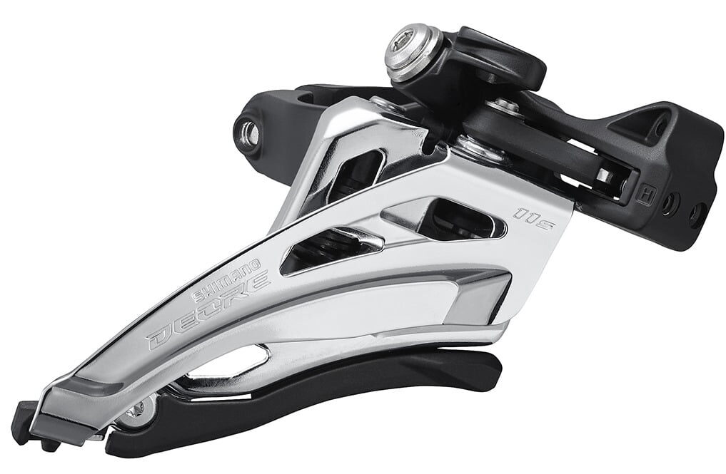 Delivering quiet and smooth shifting, SHIMANO's FD-M5100 2×11 front derailleurs feature SHIMANO's new SIDE SWING technology. The new design offers enhanced cable routing, light action, and increases clearance for large wheels and short chain stays.